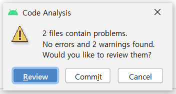 이때 이런 오류가 뜨는 건 그냥 무시하시고 Commit 하시면 됩니다