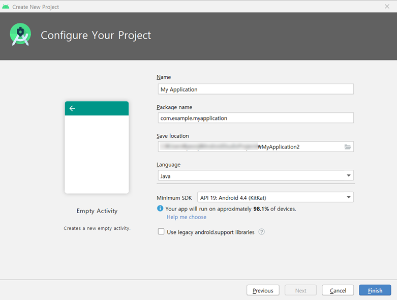 안드로이드 프로젝트를 생성해줍니다.