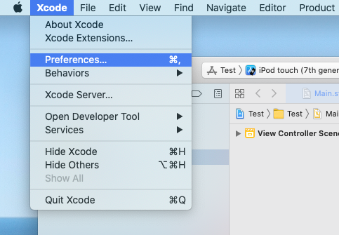 상단의 Xcode-> Preferences -> Accounts (단축키 cmd + ,)
