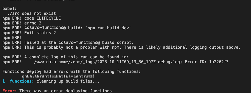 npm ERR! /www-data-home/.npm/_logs/2023-10-11T09_13_36_197Z-debug.log; Error ID: 1a2262f3